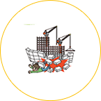 建設現場の資材が崩れ、